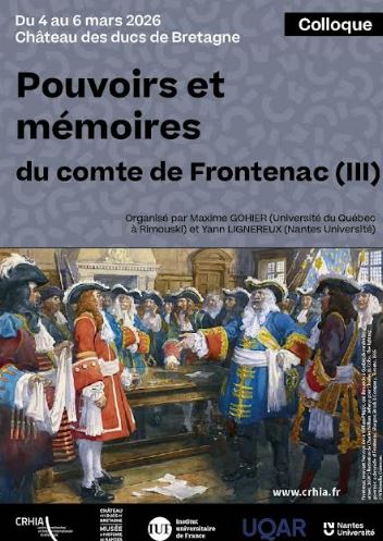 Du 4 mars au 6 mars 2026 aura lieu au château de Nantes (Loire-Atlantique) un colloque de trois jours intitulé « Pouvoirs et mémoires du comte de Frontenac ».